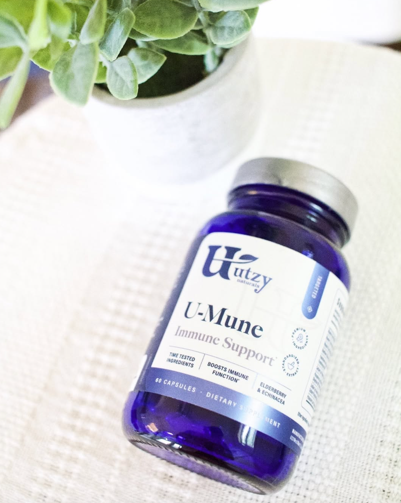 U-mune is a daily immune support formula combining Vitamin C, Vitamin D3, Zinc, Elderberry, and Echinacea to help keep your defenses strong.*
